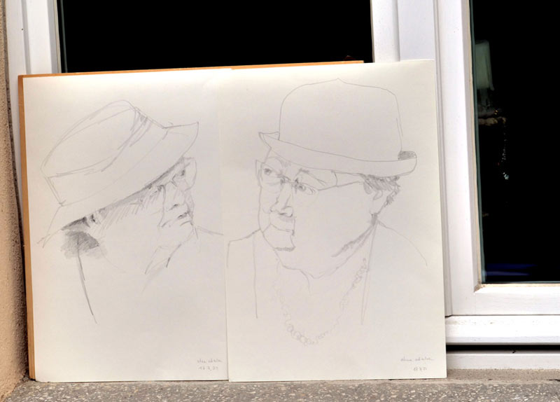 Fange ich mit den Augen an oder den Ohren? … denken die zeichnenden Beobachter ... ist die Kette wichtig oder der Hut?