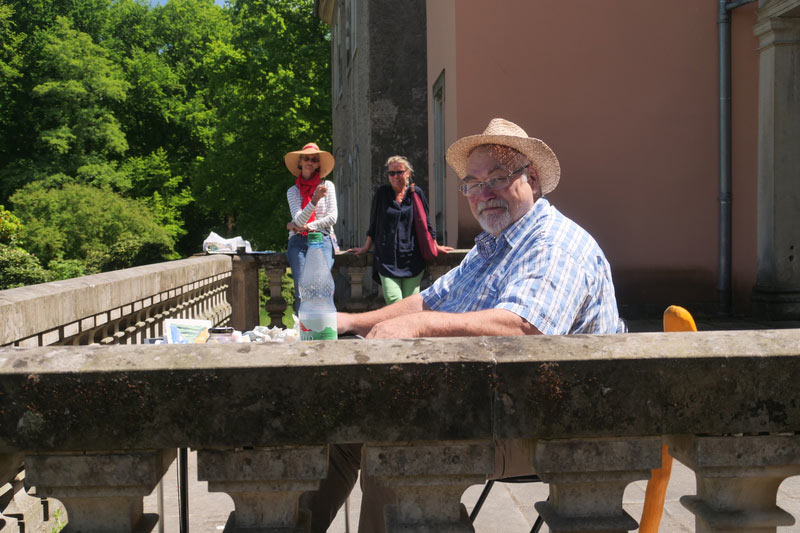 Zum zweiten Anlauf für das erste Pleinair der Peitzer Landmaler 2021 meinte es der Wettergott ausgesprochen gut mit uns. Bei azurblauem Himmel und Sonnenschein bot der Schlosspark Altdöbern die ideale Kulisse für ein schönes gemeinsames Freiluftmalerlebnis. Das Barockschloss und die gepflegte Parkanlage boten eine Fülle von Motiven. Die sechs teilnehmenden Landmaler entfalteten ihre volle Kreativität und es entstanden ausgesprochen vielfältige und schöne Arbeiten. In der Mittagspause wurden die ersten Arbeiten schon einmal gemeinsam betrachtet und ein schöpferischer Austausch über die entstandenen Werke rundete die erste Tageshälfte ab.