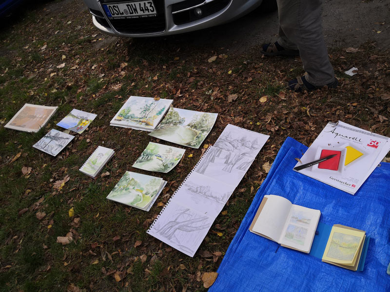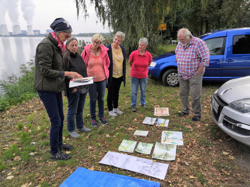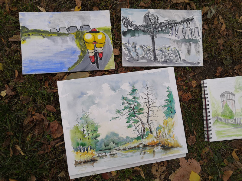 Beim gemeinsamen Picknick wurden die Arbeiten begutachtet und die weiteren Arbeitsaktivitäten der kleinen Malgruppe besprochen. So werden wir uns auch in den kommenden Monaten des Herbst- und Winterhalbjahres in den Räumlichkeiten des Peitzer Hüttenwerkes treffen um uns auszutauschen und wieder gemeinsam zu malen und zu zeichnen